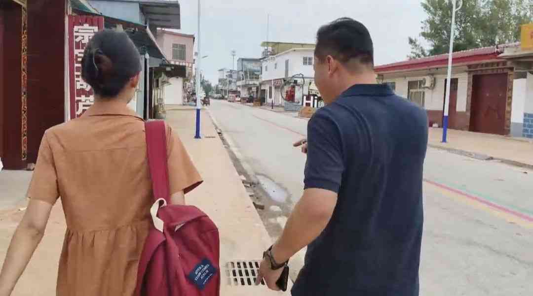 圖為實踐隊成員與當?shù)毓芾砣藛T交流