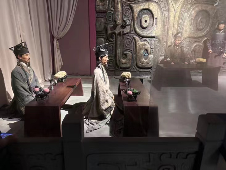 古銅新韻,文化交融 此次參觀更令我難忘的是,銅陵博物館不僅僅是一個(gè)展示文物的場所,更是一個(gè)傳承文化、啟迪智慧的平臺。通過現(xiàn)代科技手段的運(yùn)用,如數(shù)字博物館、VR體驗(yàn)等,讓古老的銅文化煥發(fā)出新的生機(jī)與活力。這種古今交融的展示方式,讓我對銅文化有了更加全面和深入的了解。在這里,游客可以通過虛擬現(xiàn)實(shí)技術(shù)身臨其境地感受銅文化的魅力。走過一條昏暗的、充滿歷史氣息的長廊,一面投影出現(xiàn)在眼前??粗跋裰需蜩蛉缟慕橙撕豌~礦,這種沉浸式體驗(yàn)讓我仿佛穿越了時(shí)空,與古代工匠來了一次跨越千年的對話。我能夠親手“觸摸”到那些古老的青銅器,感受到它們所承載的歷史重量和文化溫度。同時(shí),數(shù)字博物館還利用虛擬現(xiàn)實(shí)技術(shù),為我營造了一個(gè)個(gè)生動的歷史場景,讓我仿佛置身于古代宮廷、戰(zhàn)場或祭祀現(xiàn)場,親身體驗(yàn)?zāi)莻€(gè)時(shí)代的風(fēng)土人情和文化氛圍。