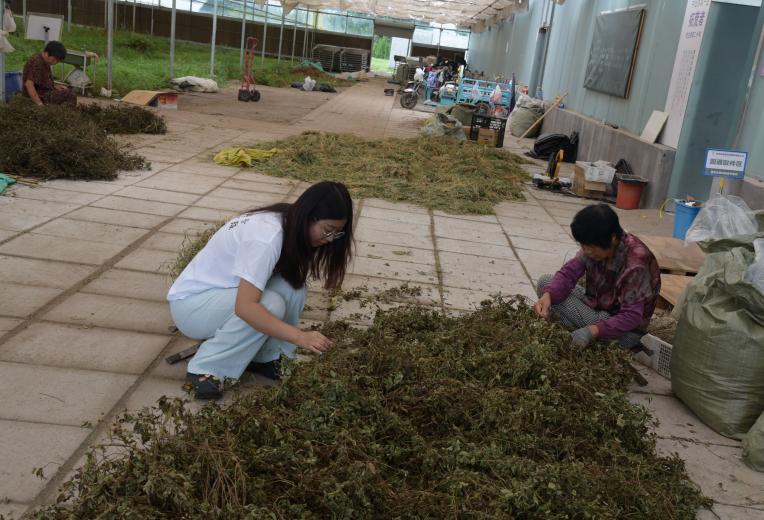 圖2 沿黃流域科技興農(nóng)研究生志愿服務(wù)團(tuán)體驗香草制作 羅夢麗攝