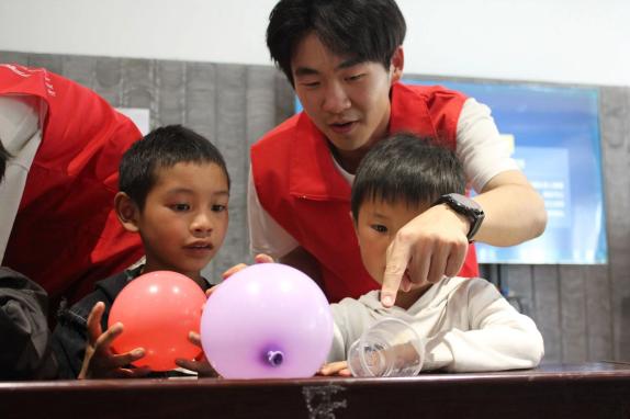 為提升學(xué)生科學(xué)素養(yǎng),培養(yǎng)學(xué)生科學(xué)興趣,激發(fā)其好奇心、想象力及探索欲,7月20日,長安大學(xué)赴貴州畢節(jié)“渭愛育夢赴黔川·攜手啊嘎助振興”暑期社會實踐隊成員宋子通、汪恩琪為啊嘎村的孩子們帶來了一節(jié)智趣橫生的科學(xué)小實驗課程。