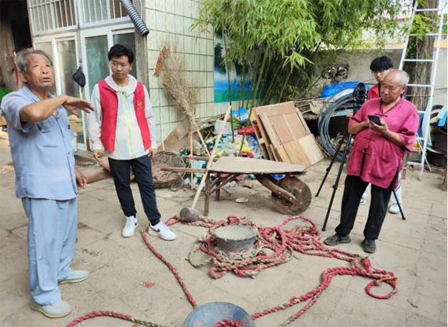 7月6日下午,實(shí)踐團(tuán)再次來(lái)到了王老師的家中,這次他們親手試了試打硪號(hào)子,嘗試了解非遺文化的魅力。
