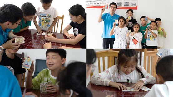 OH卡故事 探索自我OH卡,又稱潛意識圖像卡,是一種通過圖片與文字引導個體進行自由聯(lián)想與表達的心理游戲工具,OH卡活動不僅能幫助孩子們打開心靈的大門,還能激發(fā)創(chuàng)造力、想象力,促進情感表達和自我認知的發(fā)展。實踐團成員吳海問帶領(lǐng)孩子們開展OH卡活動,每位孩子隨機抽取OH卡,孩子們根據(jù)所抽卡片內(nèi)容編織一小段故事,下一位繼續(xù)接龍,共同創(chuàng)作一個奇妙的故事集,在孩子們天馬行空的想象中,一個大家共同創(chuàng)造的故事逐漸有了雛形。OH卡活動不僅增進了孩子們間的友誼,也在故事的創(chuàng)造中照亮和溫暖了自己。