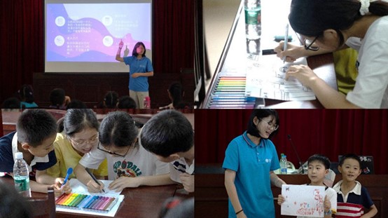合作共創(chuàng) 描繪未來7月15日,團隊成員謝媛媛以“創(chuàng)造一個‘TA’”,帶領(lǐng)孩子們開展了一場“認識自我 描繪未來”自由涂鴉活動。在引導語的指引下,孩子們共同討論自由涂鴉,利用繪畫心理學和藝術(shù)表達的手法,幫助學生表達情緒情感,同學們充滿好奇和期待,積極投入其中。自由涂鴉結(jié)束后,實踐團成員組織大家用手在紙上有意識畫出身體輪廓,期間可以使用各種顏色來畫出身體的感受。身體輪廓繪制完成后,孩子們仔細觀察自己的畫像,認真揣摩內(nèi)心感受,將身體訊息以文字或圖案的形式寫在自畫像上。通過共同繪制,孩子們把個人想法和集體意見連接起來,更好地了解個體一生的發(fā)展,在這個過程中大家積極探索自我與集體的關(guān)系,提升了溝通合作能力,發(fā)掘成長的潛在力量。