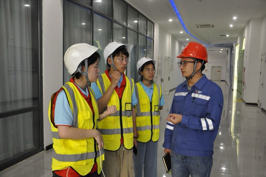 隨后,小分隊成員在工程師侯工的帶領下來到商丘中電環(huán)保發(fā)電有限公司集控樓進行參觀學習。首先,小分隊成員通過集體觀看科普視頻初步了解垃圾可以通過高溫焚燒轉化為電能,從而實現垃圾減量化、無害化和資源化。接著,在垃圾焚燒發(fā)電科普體驗館,侯工向分隊成員詳細生動地解釋了垃圾焚燒發(fā)電的現代化工藝流程,并對流程中專業(yè)化的細節(jié)進行了耐心地解釋,分隊中環(huán)境相關專業(yè)的同學們也表示專業(yè)人員的解說加深了對理論知識應用的理解,對專業(yè)知識的學習大有裨益。對垃圾焚燒發(fā)電的流程有了基本的了解后,侯工帶領分隊成員實地參觀了垃圾吊控室,在垃圾吊控室內,技術員隔著玻璃對巨大的垃圾倉進行機械化吊控,大家看到垃圾抓斗進行抓料、運輸,再堆料,循環(huán)往復,侯工表示,垃圾經過5至7天發(fā)酵后,再投入焚燒爐進行燃燒,轉換為電能,燃燒完的爐渣冷卻后還可以回收利用。由于嚴格的全封閉及負壓管理,吊控室及周圍沒有一絲異味,巨大的金屬抓手在垃圾堆上進行作業(yè)以實現垃圾的處理。接著,侯工還帶領分隊成員們參觀了中控室、卸料平臺等地,分隊成員們發(fā)現,各個控制室都已實現了規(guī)范化和高度智能化管理,每一個環(huán)節(jié)緊密配合,井然有序。