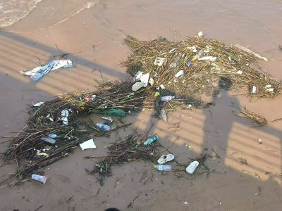 調(diào)研伊始,團(tuán)隊(duì)成員前往位于山東省青島市即墨區(qū)的岙山海水浴場(chǎng)進(jìn)行實(shí)地調(diào)研。與寒假調(diào)研情況相比,海灘環(huán)境在暑期明顯向著臟亂差的趨勢(shì)變化發(fā)展,沙灘垃圾的增加與游客數(shù)量的增長(zhǎng)息息相關(guān)。團(tuán)隊(duì)在調(diào)研過程中發(fā)現(xiàn)海灘上塑料瓶、零食袋、外賣盒、紙巾、廢棄漁網(wǎng)等垃圾隨處可見,其中部分垃圾已經(jīng)被埋藏在沙灘中,清理難度大幅增加。同時(shí)由于天氣原因,游客大量購(gòu)買冷飲雪糕等消暑產(chǎn)品,但不少游客卻將飲料瓶、塑料袋等包裝垃圾隨手亂扔,導(dǎo)致了此類垃圾在沙灘上大量分布,進(jìn)一步增加了沙灘垃圾的總體數(shù)量。