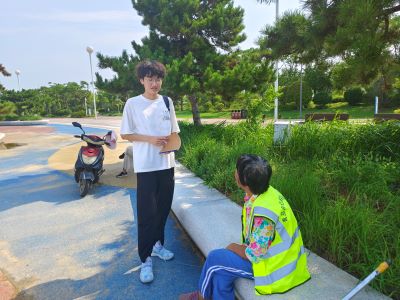隨后調(diào)研團(tuán)對(duì)沙灘上的游客和清潔人員進(jìn)行了實(shí)地走訪。首先,團(tuán)隊(duì)成員圍繞沙灘垃圾的產(chǎn)生和分布情況對(duì)沙灘上的游客進(jìn)行了采訪,游客表示許多沙灘垃圾的產(chǎn)生都源于部分游客的不良習(xí)慣,不少游客容易將自身產(chǎn)生的垃圾隨手亂扔,導(dǎo)致了沙灘垃圾的大量分布。在談到沙灘垃圾清潔機(jī)器人時(shí),受訪游客表示聽說過類似產(chǎn)品,但實(shí)際投入使用應(yīng)存在較大困難。緊接著團(tuán)隊(duì)成員圍繞沙灘垃圾清潔現(xiàn)狀對(duì)當(dāng)?shù)厣碁┣鍧嵢藛T進(jìn)行了采訪,清潔人員表示相較于寒假期間,暑期清潔人員的數(shù)量有所增加,目前沙灘垃圾的清理仍以人工清理為主,清潔效率較低,同時(shí)由于暑期高溫、暴雨等天氣因素的影響,清理難度進(jìn)一步增大。在提及沙灘垃圾清潔機(jī)器人時(shí),清潔人員表示并未接觸過此類智能產(chǎn)品,但對(duì)其抱有較大期望。
