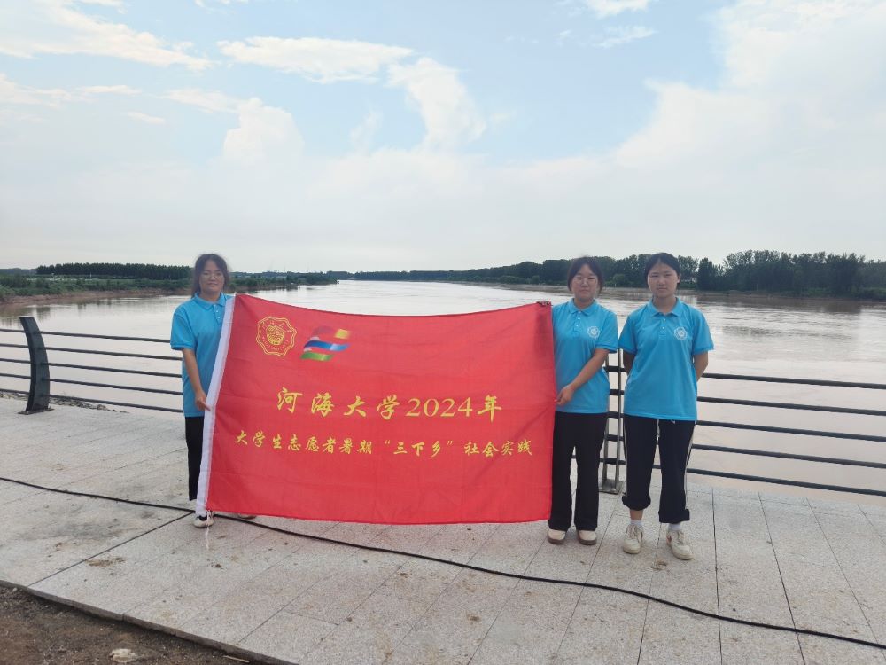 下午,實踐團成員們來到黃河岸邊,觀察黃河流向、流量、水位等特征,實地觀察了解了當前黃河的狀況。同時,實踐團成員觀察了黃河周邊的生態(tài)環(huán)境狀況,看到周邊的植被茂密,對黃河當前的治理成效有了更加真實的感觸。循河前進,實踐團成員們看到了多樣的黃河河堤工程,詳細了解了其背后的原理,并通過觀察水流走勢驗證功效,深刻理解了治黃工程的科學性和成功性。