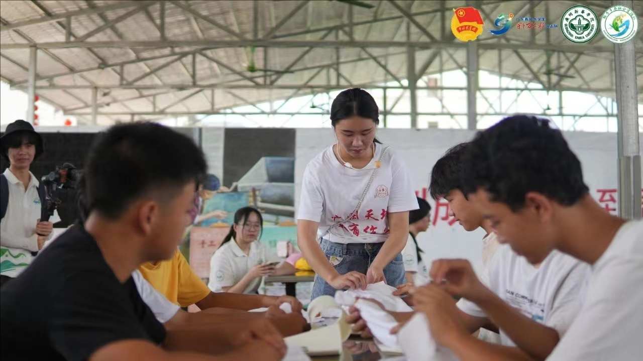 山蕉知青文化園不僅見證了歷史,更成為了藍(lán)染藝術(shù)的舞臺。在這里,傳統(tǒng)與創(chuàng)新交融,歷史與現(xiàn)代對話,每一份藍(lán)染作品都彰顯其獨(dú)特的魅力。實(shí)踐隊(duì)與同學(xué)們的互動,不僅是一次手工體驗(yàn),更是一場深刻的文化之旅。
