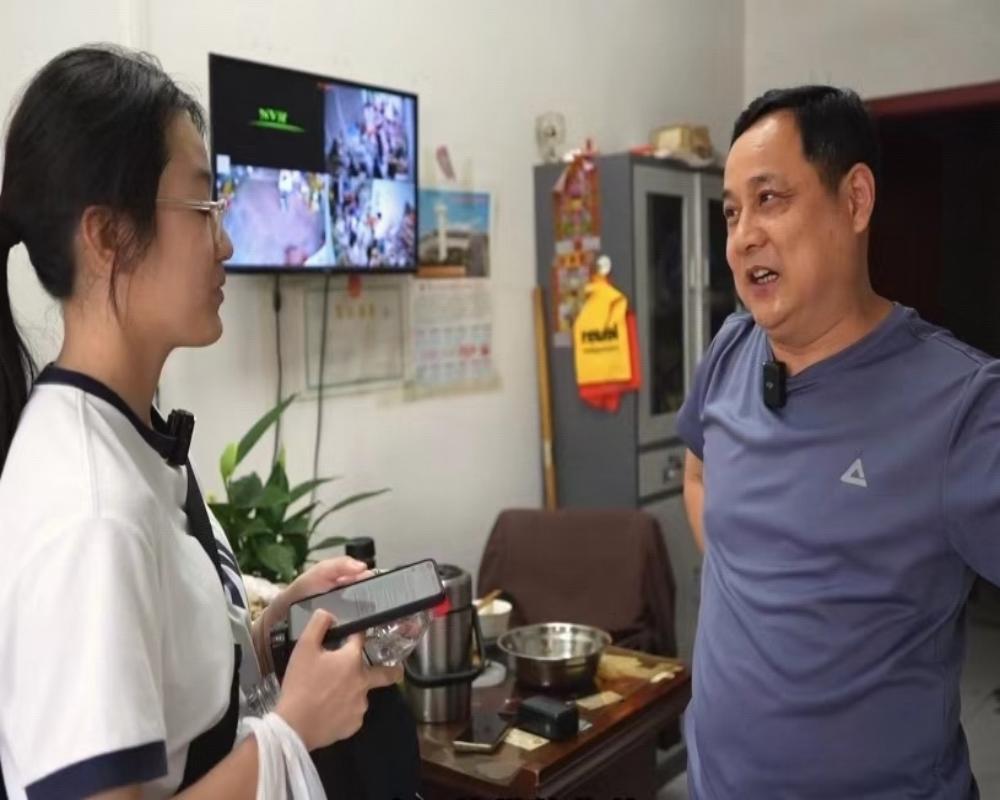 圖為團隊成員采訪負責人鄭士付 楊羽凡攝