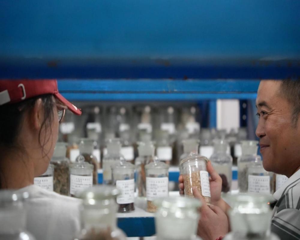 種植田里間隔相種的酸棗整齊排列,未成熟的果實顆顆小巧而飽滿,宛如綠寶石墜在枝頭,即使正值七月酷暑,天氣炎熱逼人,酸棗也展現(xiàn)出頑強的生命力,耐旱耐曬,生機勃勃。步入中藥標(biāo)本藏庫,中藥標(biāo)本種類齊全、范疇非常廣泛,涵蓋了從罕見的海馬、海龜、蛇蝎等動物類,到日常所見的小麥、鮮花等植物類,應(yīng)有盡有。交易市場內(nèi),商販忙碌的展示著他們的商品,一袋袋標(biāo)注清晰的藥材整齊排列,方便來往的買家挑選,展現(xiàn)了一幅生動的商業(yè)畫卷。