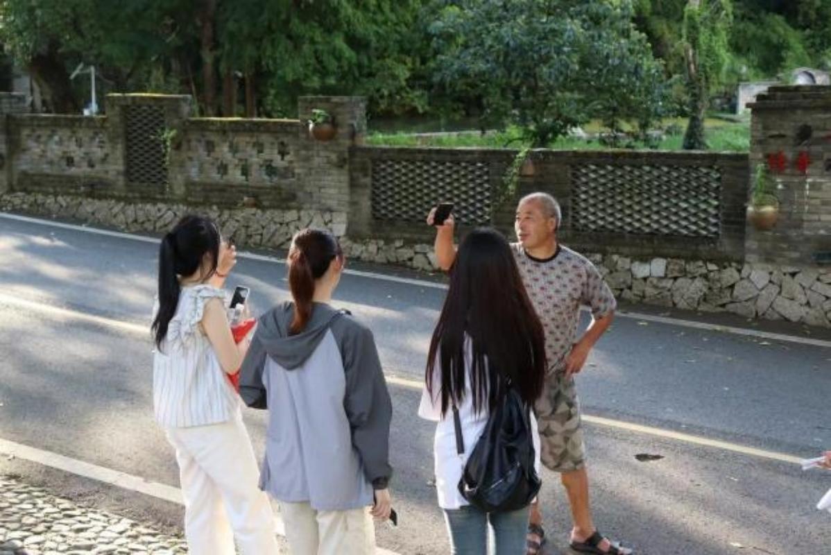 實(shí)踐團(tuán)隊(duì)成員同方山鄉(xiāng)龍現(xiàn)村主任合影。俞星辰 供圖。