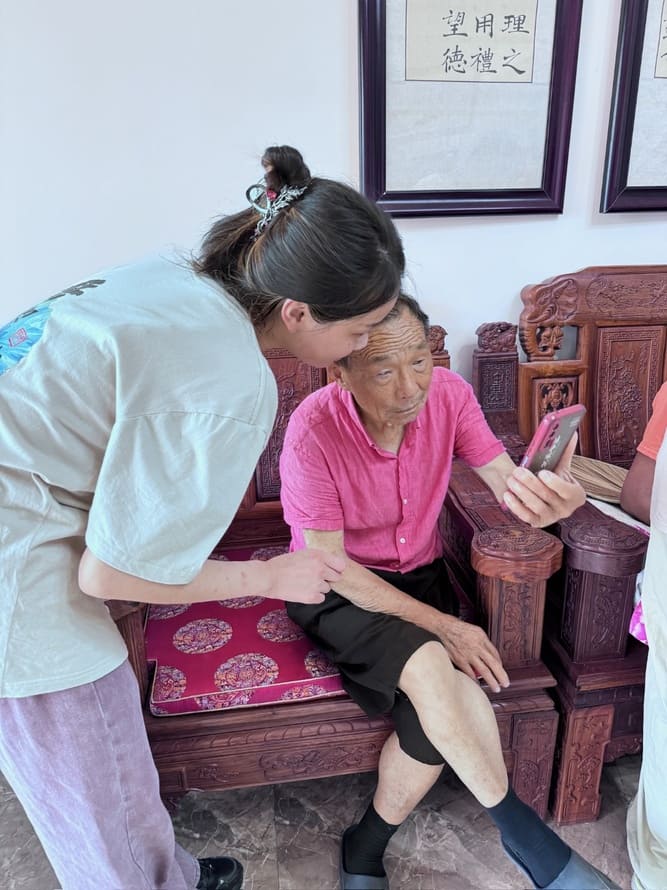 培訓(xùn)會(huì)的互動(dòng)環(huán)節(jié)更是將現(xiàn)場氣氛推向了高潮。老年朋友們紛紛拿出自己的手機(jī),在實(shí)踐隊(duì)成員們的幫助下,嘗試著操作各種應(yīng)用程序。每當(dāng)有人成功完成一項(xiàng)任務(wù)時(shí),現(xiàn)場都會(huì)響起熱烈的掌聲和歡呼聲。這種積極的氛圍不僅激發(fā)了老年朋友們的學(xué)習(xí)熱情,也讓他們感受到了來自社區(qū)的溫暖與關(guān)懷。