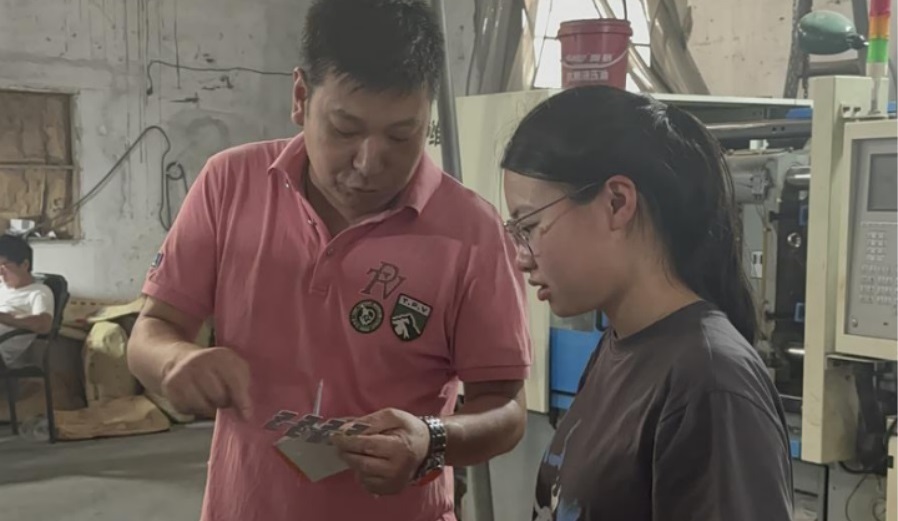 (圖為曹豐注塑加工電子廠(chǎng)廠(chǎng)長(zhǎng)曹豐先生在為實(shí)踐對(duì)比成員介紹該廠(chǎng)生產(chǎn)的產(chǎn)品。吳佳慧 供圖)