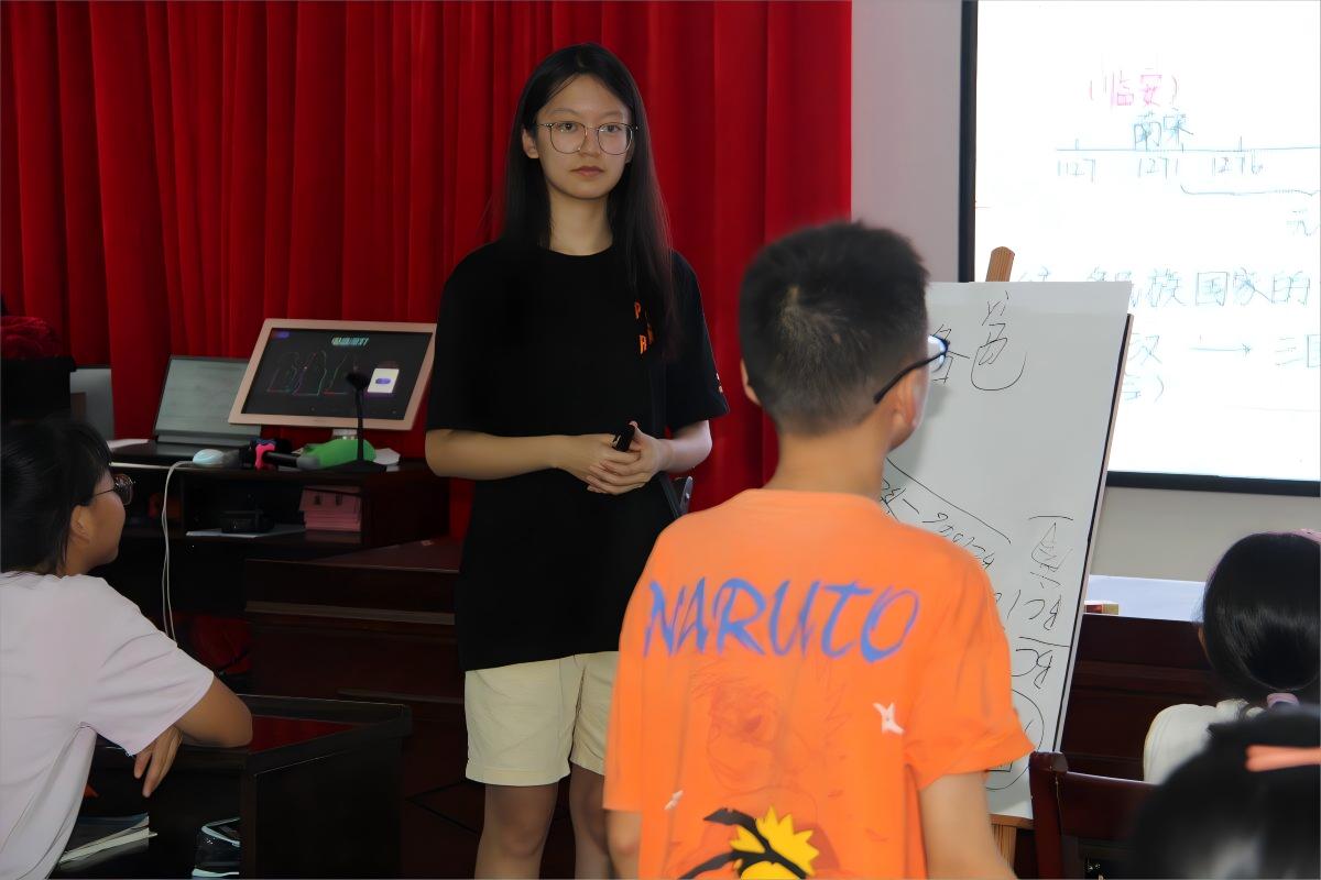 歷史課上,志愿者張瀚文為孩子們帶來(lái)精彩的故事分享,講述了從夏朝到秦朝的演變過(guò)程,向孩子們描繪出了一件件精彩有趣的歷史故事。孩子們認(rèn)真的神情,認(rèn)真參與課堂,無(wú)不是對(duì)志愿者的肯定。“孩子們會(huì)慢慢長(zhǎng)大,我們傳授的知識(shí)終會(huì)讓孩子們開(kāi)出屬于他們自己的花朵”,志愿者張瀚文說(shuō)道。