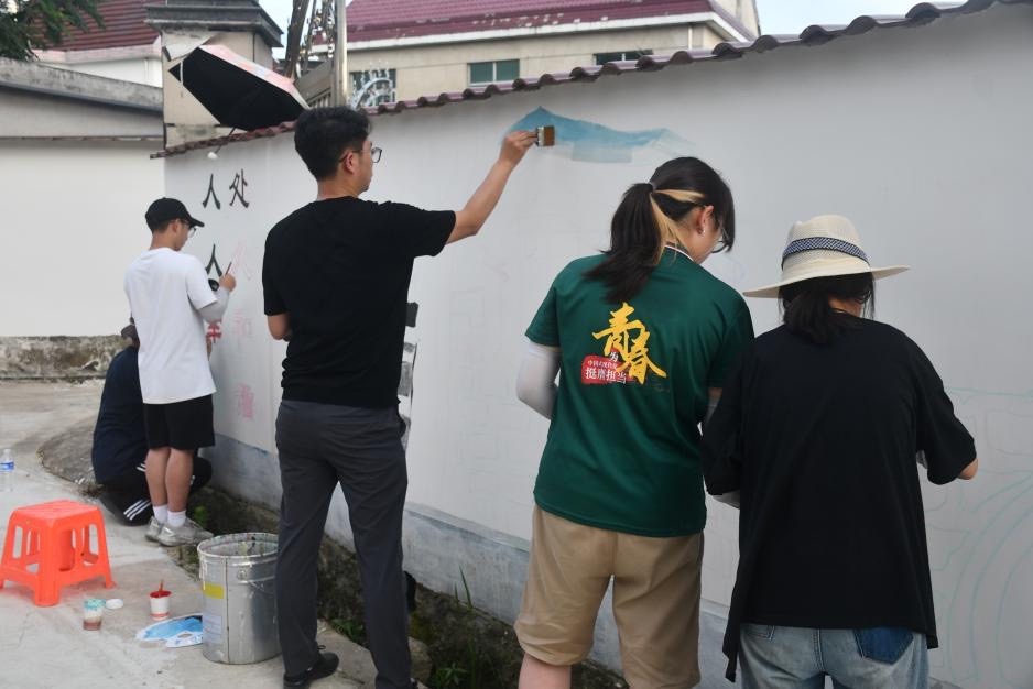 圖為實(shí)踐隊(duì)在墻繪創(chuàng)作。