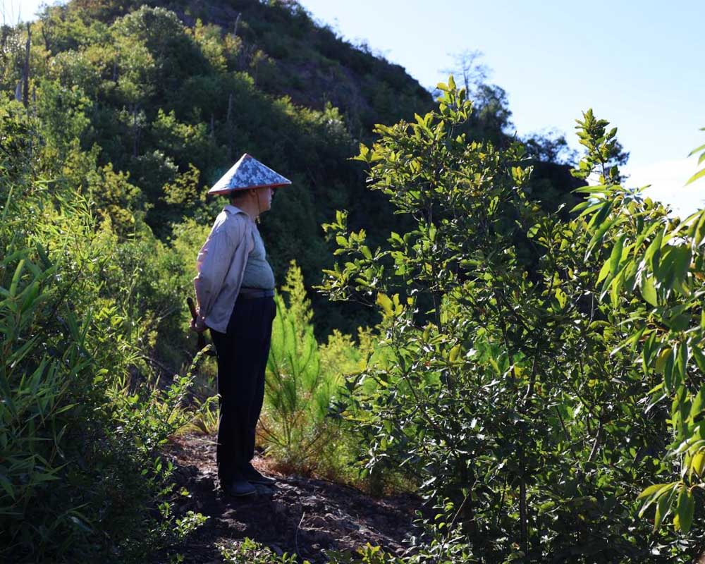圖為帶路的村民眺遠(yuǎn)回味童年