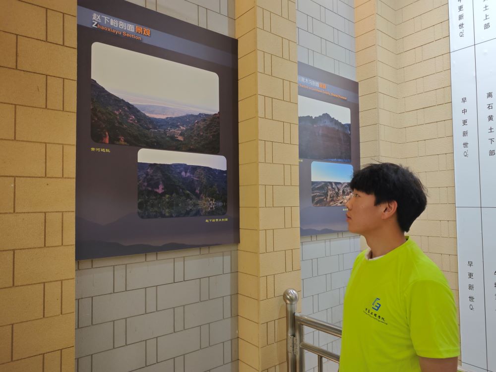圖為團隊成員認(rèn)真學(xué)習(xí)黃河地質(zhì)地貌發(fā)展歷程。 通訊員李俊豪 攝