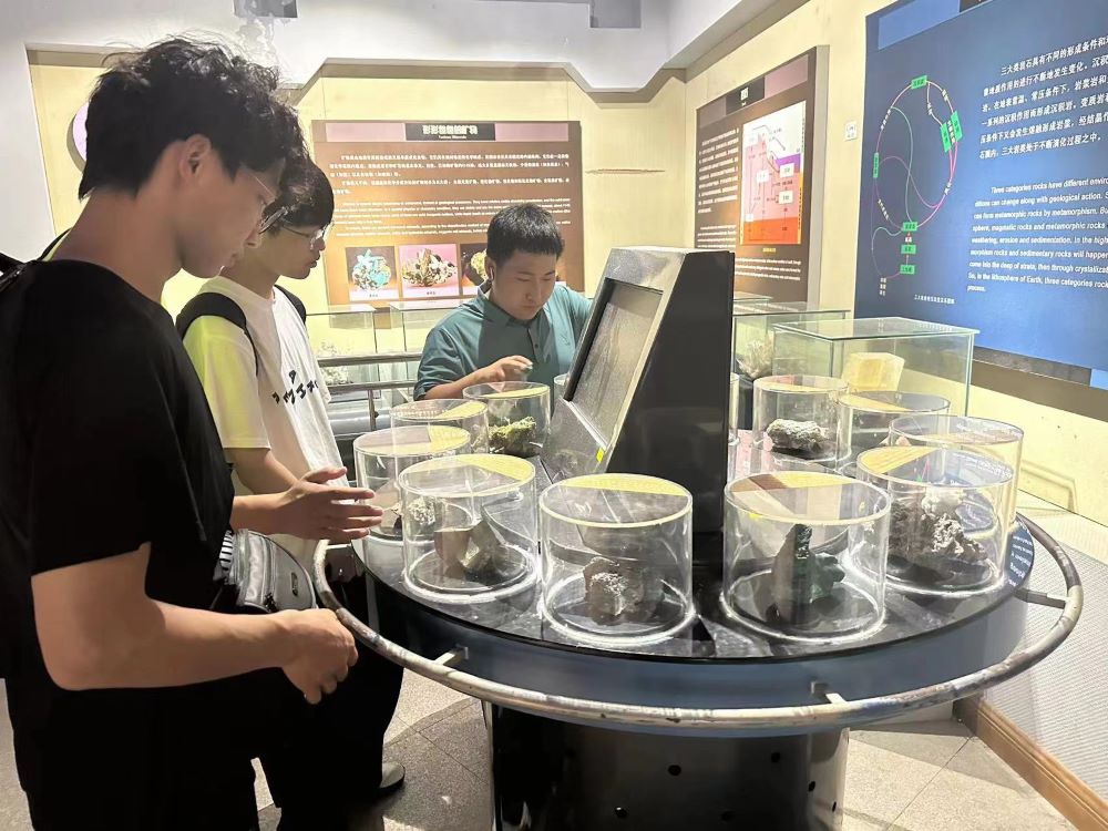 圖為工作人員對團隊成員講解黃河礦石產(chǎn)物。 通訊員 李俊豪 攝