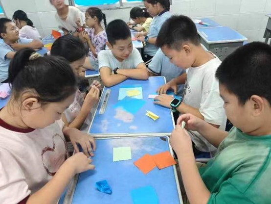 圖為蒲公英實踐團(tuán)隊為孩子們開展折紙活動。 楊闊 攝
