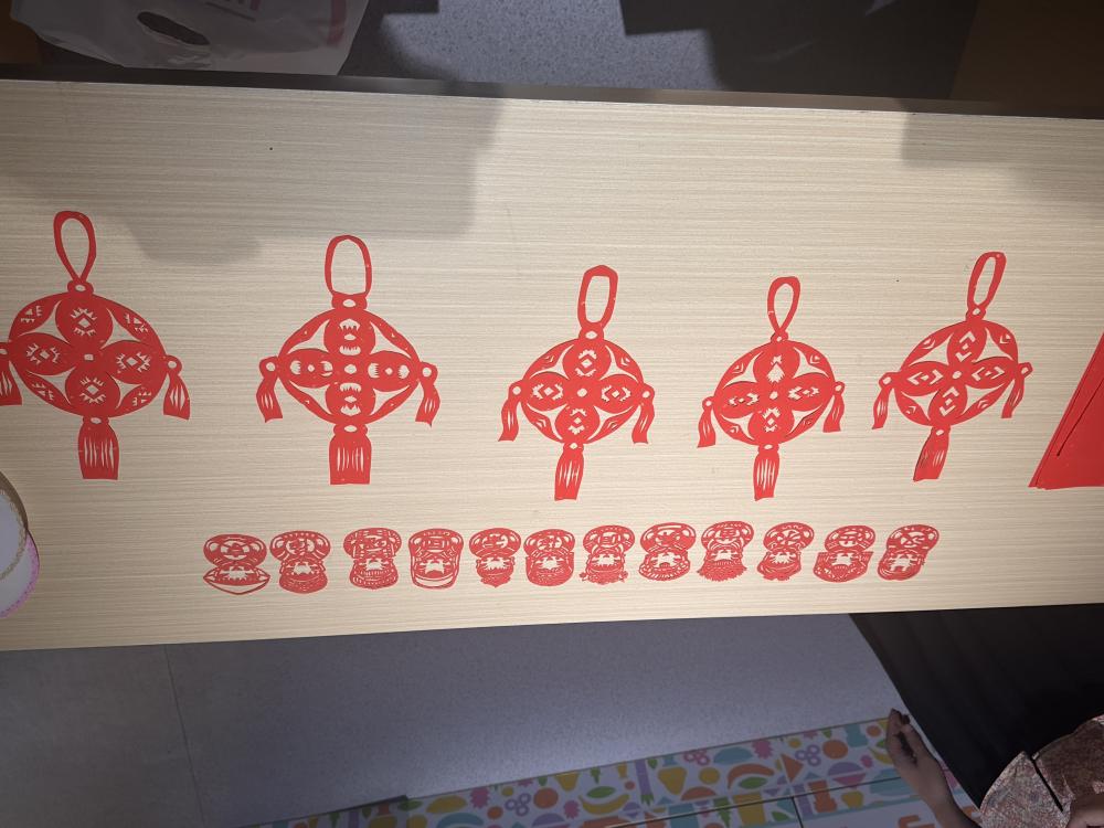 一踏入鐘老師的工作室,成員們就被墻上掛滿的精美剪紙作品深深吸引!鐘昀睿老師,這位剪紙界的藝術(shù)家,用她那雙巧手,將紅紙化作了栩栩如生的萬事萬物。其中,最引人注目的是老師的代表作——《鑄牢中華民族共同體意識》,這幅作品從畫面設(shè)計、線條布局到作品內(nèi)涵,無一不體現(xiàn)著她的匠心獨運。