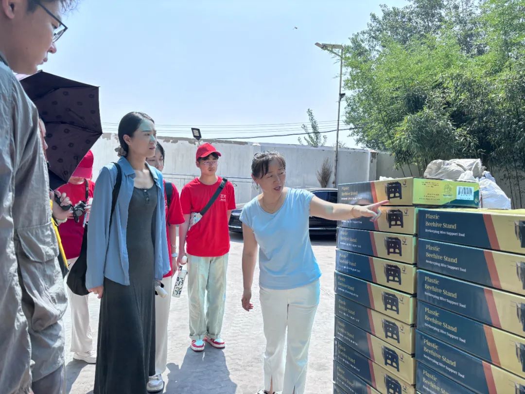 實踐團(tuán)成員首先到達(dá)斯威特蜂機具有限公司進(jìn)行實地參觀。企業(yè)代表人帶領(lǐng)實踐團(tuán)成員參觀了企業(yè)的生產(chǎn)加工車間,熱情地向大家介紹了包括標(biāo)記瓶等可重復(fù)使用的、多種尺寸的一百多類蜂具產(chǎn)品。參觀過程中,大家了解到斯威特蜂機具有限公司不僅擁有豐富的產(chǎn)品線,還有包括蜜蜂養(yǎng)殖設(shè)備、蜂產(chǎn)品加工設(shè)備等不同設(shè)備以滿足各類客戶的需求。同時公司還有專門的跨境電商公司經(jīng)營外貿(mào),將優(yōu)質(zhì)的蜂具產(chǎn)品銷往包括美國、加拿大以及歐洲、澳洲、南洲等世界各地的國家。此外,公司還根據(jù)市場的需求不斷研發(fā)新產(chǎn)品,以適應(yīng)蜂業(yè)新發(fā)展的需要,同時也輻射了周圍地區(qū)帶動了周邊村鎮(zhèn)經(jīng)濟發(fā)展,為當(dāng)?shù)貏?chuàng)造了更多就業(yè)機會。