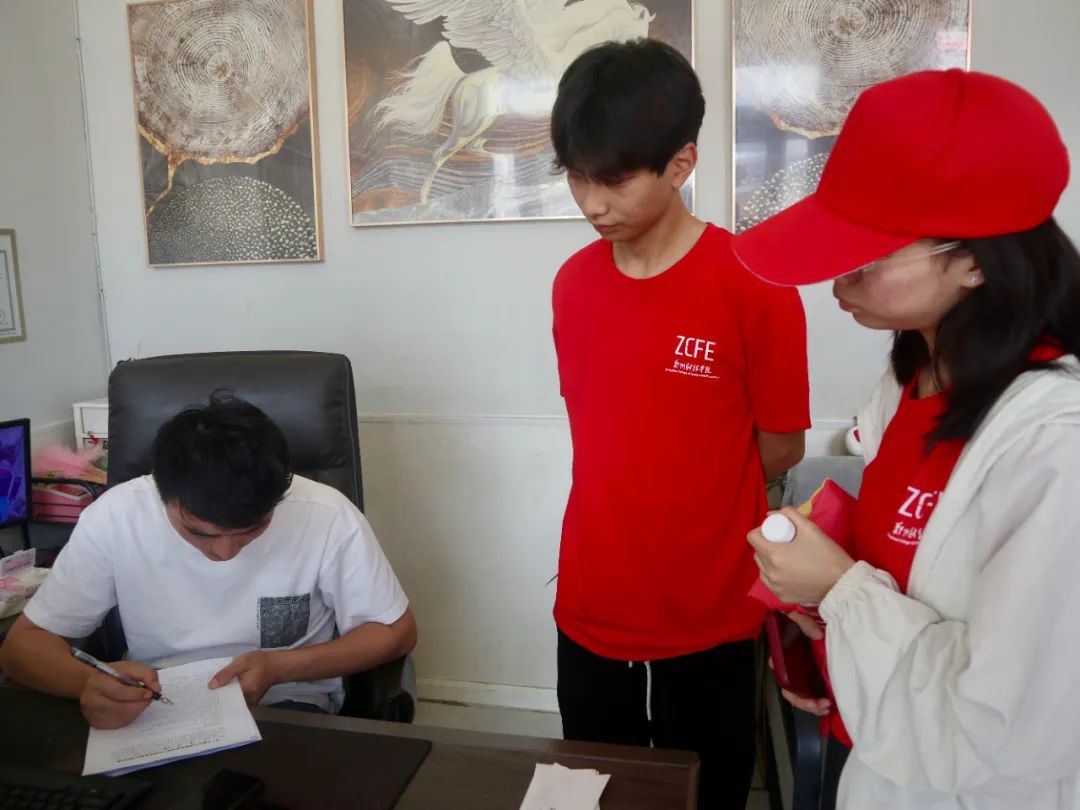 實踐團(tuán)成員邀請商戶填寫調(diào)查問卷