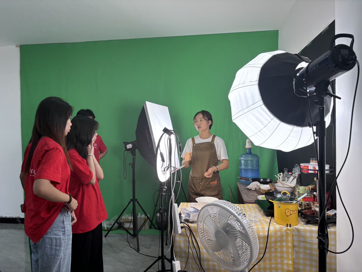 接著,實(shí)踐團(tuán)成員共同學(xué)習(xí)了短視頻的拍攝和制作技巧。短視頻作為一種新興的媒介形式,具有傳播速度快、互動性強(qiáng)等特點(diǎn),對于推廣鄉(xiāng)村特色產(chǎn)品和文化具有重要意義。通過學(xué)習(xí),實(shí)踐團(tuán)成員們不僅掌握了短視頻的拍攝、剪輯、配樂等基本技巧,還學(xué)習(xí)到了燈光、調(diào)色、配音等后期處理技巧,并嘗試制作了一些廣告產(chǎn)品宣傳的短視頻,有助于幫助實(shí)踐團(tuán)成員更好地了解專業(yè)相關(guān)的實(shí)際應(yīng)用場景,有力地提升了同學(xué)們的技能水平。