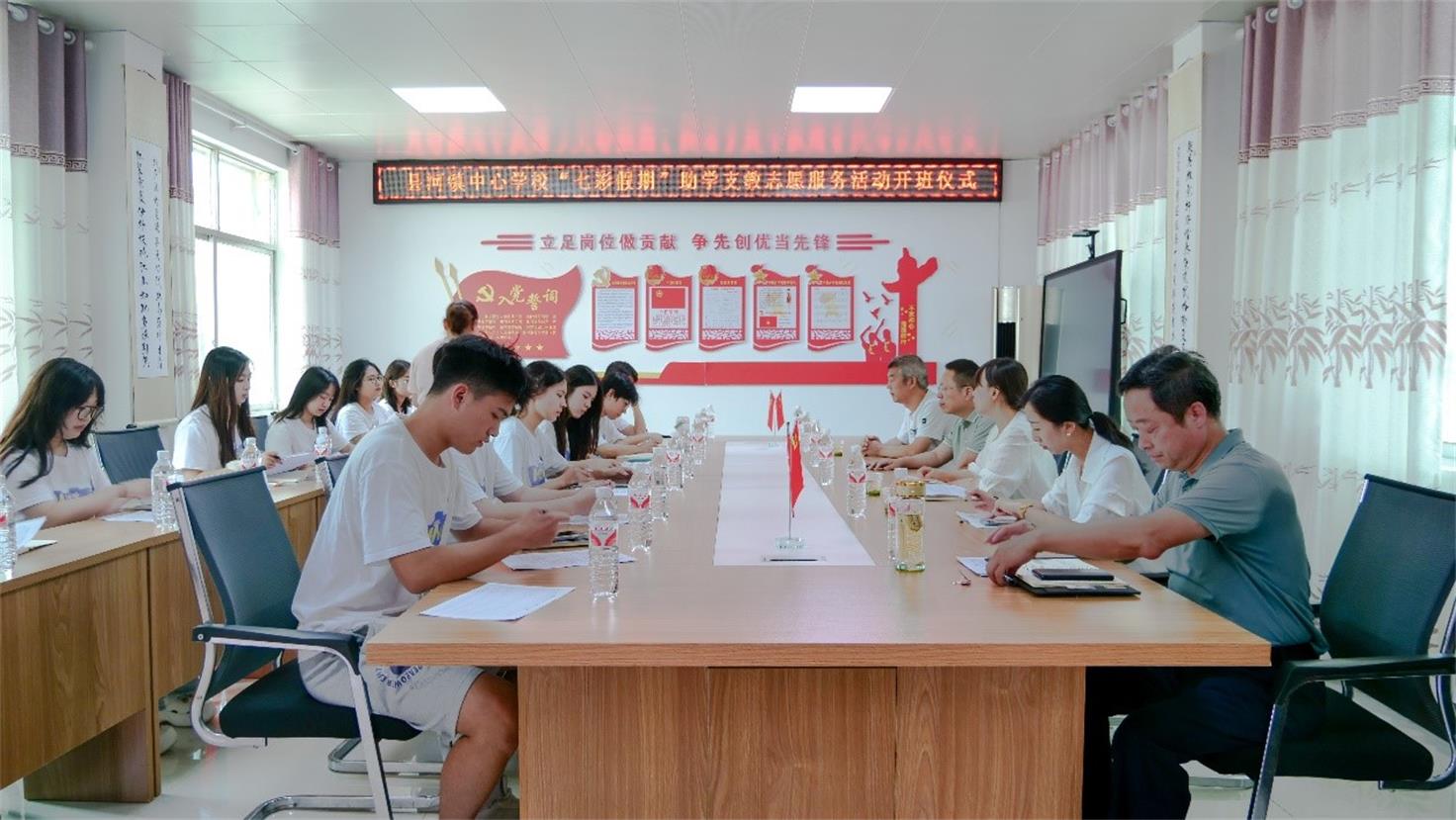 “雛鷹計劃”暑期社會實踐隊出征儀式于上午10:30在 縣河鎮(zhèn)中心學(xué)校隆重舉行。參會人員有湖北醫(yī)藥學(xué)院校團(tuán)委書記邱爽,湖北醫(yī)藥學(xué)院校團(tuán)委組織提升部主任鐘驊、湖北醫(yī)藥學(xué)院藥護(hù)學(xué)院駐竹溪縣縣河鎮(zhèn)縣河村鄉(xiāng)村振興工作隊第一書記錢江以及縣河鎮(zhèn)中心學(xué)校的校長黃鵬校長、劉成金副校長和實踐隊全體成員