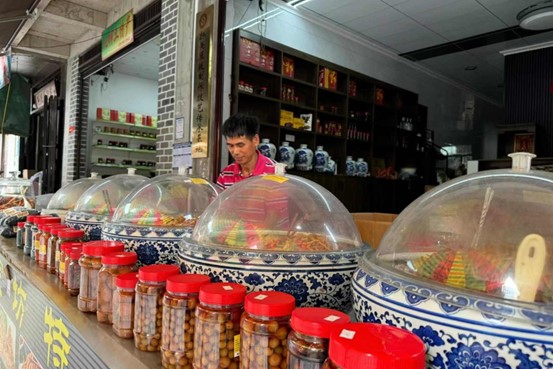 在結(jié)束揚美古鎮(zhèn)實地調(diào)研前,黎筱萌同學對古鎮(zhèn)游客進行采訪,在對話中體會別樣的揚美意趣。第一位采訪者是揚美古鎮(zhèn)的居民,在此地居住多年,深受揚美文化浸染,豆豉等也是他的日常飯食。第二位采訪者是青年學生,通過談話,黎筱萌同學了解到這位同學是正值暑期來到古鎮(zhèn)散步游玩,之前早已耳聞豆豉和木瓜丁的盛名,打算來古鎮(zhèn)親自看看特色美食的歷史。