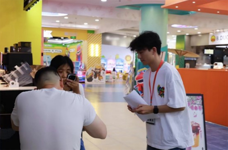 圖為團(tuán)隊(duì)在發(fā)放調(diào)研問卷 俞弈 供圖