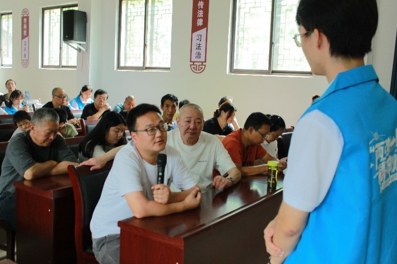 上午9時,新星宣講團的成員們身著藍色馬甲,佩戴工作證,在后坪鄉(xiāng)新時代文明實踐大講堂開展“兩彈一星”精神宣講。聽眾席上匯聚了多元的面孔:有耕耘在鄉(xiāng)間田野、臉龐上刻滿歲月痕跡的農(nóng)民伯伯,也有趁著假期歸鄉(xiāng)的莘莘學子,他們的笑容中交織對未知的好奇。