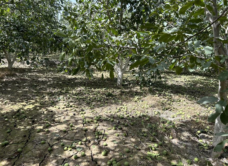 為精準(zhǔn)掌握核桃產(chǎn)量現(xiàn)狀,優(yōu)化采收措施,提升核桃品質(zhì)與市場(chǎng)競(jìng)爭(zhēng)力,同時(shí)增強(qiáng)果農(nóng)的田間管理技能,2024年8月22日,正值核桃豐收的季節(jié),塔里木大學(xué)園藝與林學(xué)學(xué)院“凝‘核’聚‘艾’科技助農(nóng)服務(wù)團(tuán)”在張銳教授的帶領(lǐng)下前往新疆生產(chǎn)建設(shè)兵團(tuán)第一師三團(tuán),開展了一場(chǎng)別開生面的暑期“三下鄉(xiāng)”社會(huì)實(shí)踐活動(dòng)。此次活動(dòng)的核心聚焦于核桃產(chǎn)量的實(shí)地調(diào)研與采收措施的創(chuàng)新推廣,吸引了眾多核桃種植戶的積極參與和高度關(guān)注。