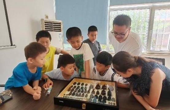 圖為李恒毅與孩子們觀察昆蟲(chóng)標(biāo)本 焦夢(mèng)鑫供圖