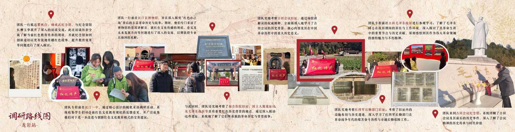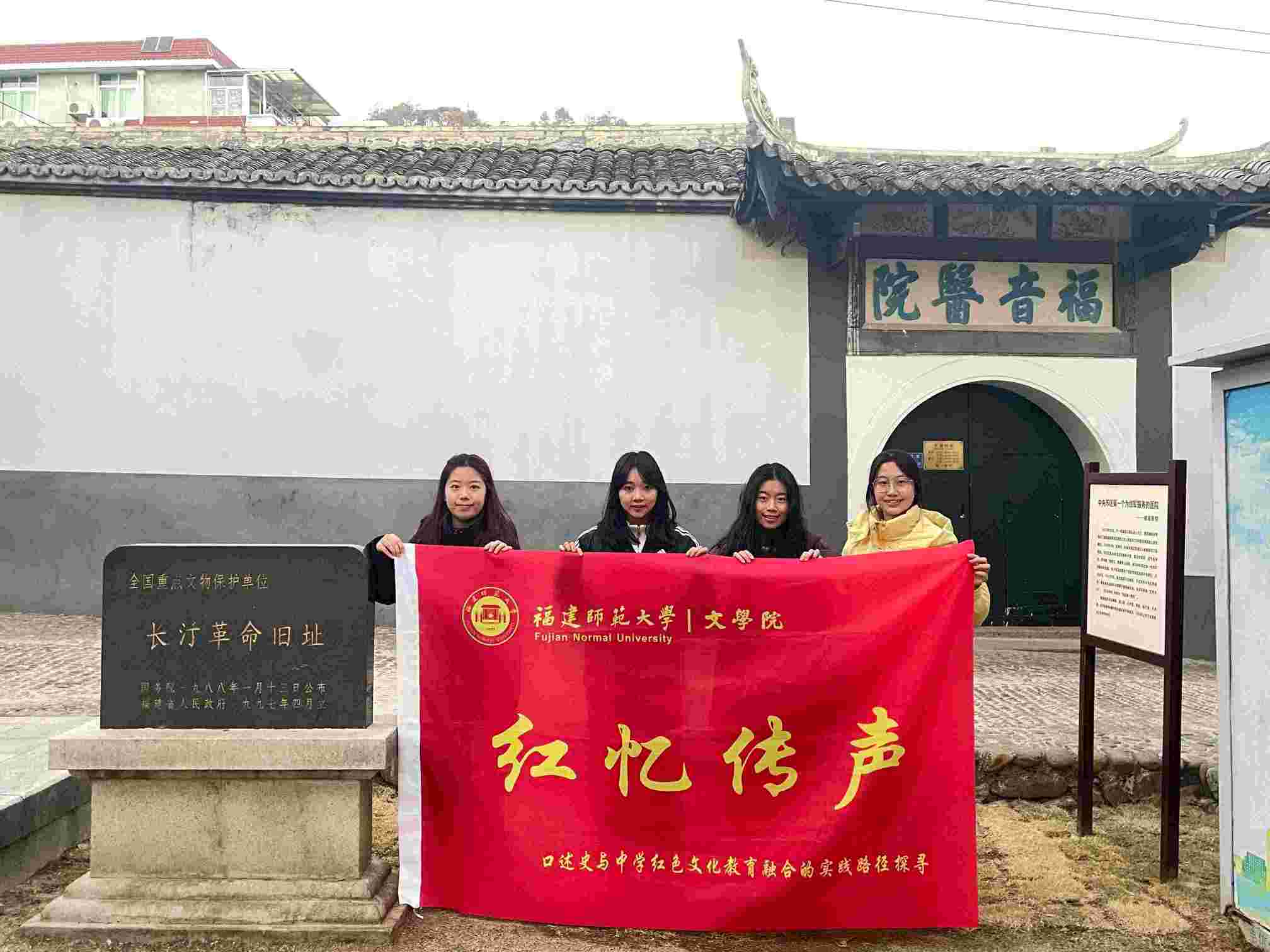 為深入學習貫徹黨的二十大報告精神,堅定愛國主義教育的價值追求,1月19日至1月21日,文學院“紅憶傳聲”實踐隊前往龍巖市長汀縣、上杭縣開展實踐活動。在此期間,實踐隊通過實地調研、人物訪談、志愿宣講等多種形式,深度探索當?shù)丶t色資源和紅色教育的發(fā)展現(xiàn)狀,追尋革命歷史足跡,踐行習總書記“用好紅色資源,傳承好紅色基因,把紅色江山世世代代傳下去”的殷切指導。