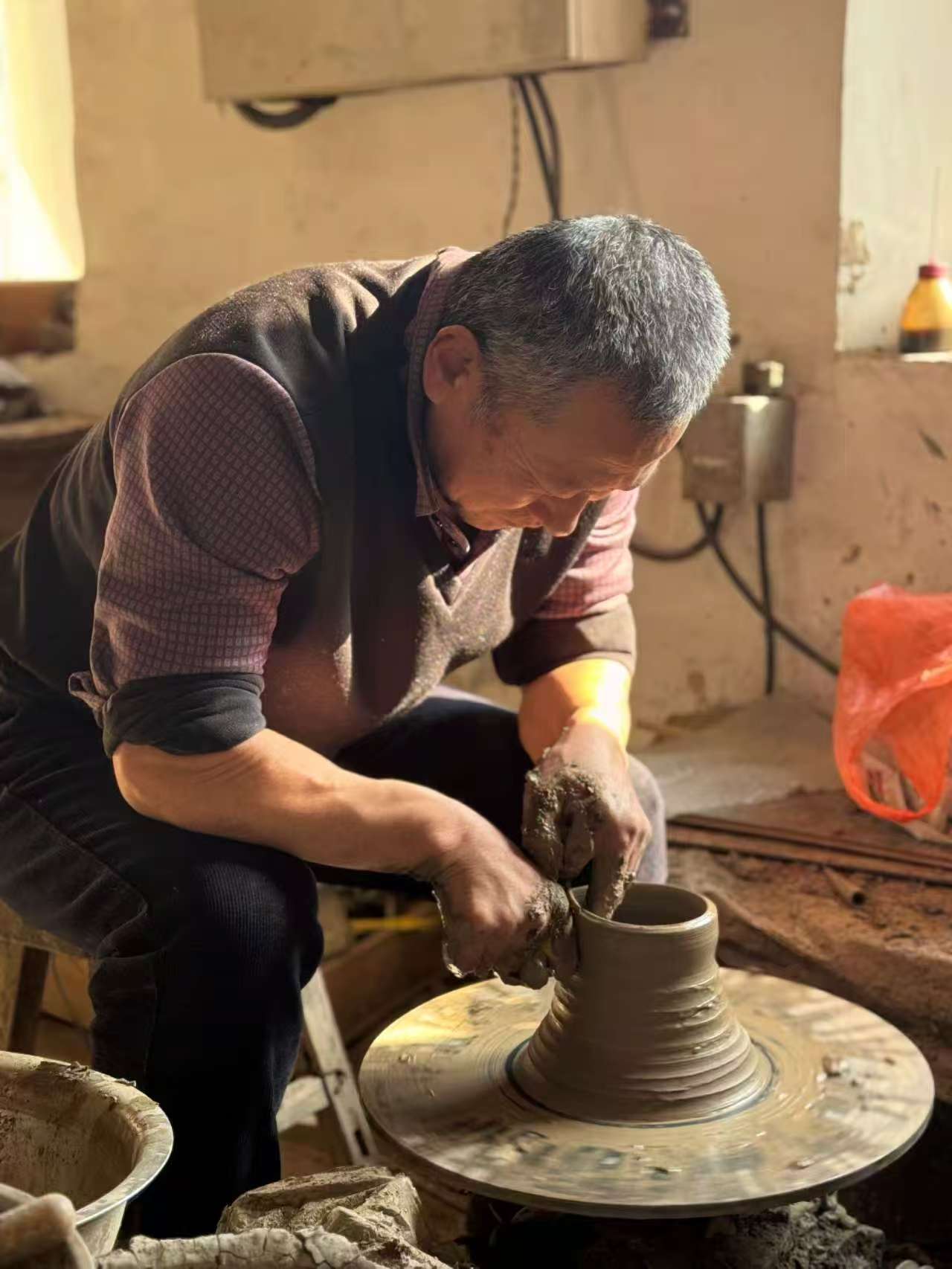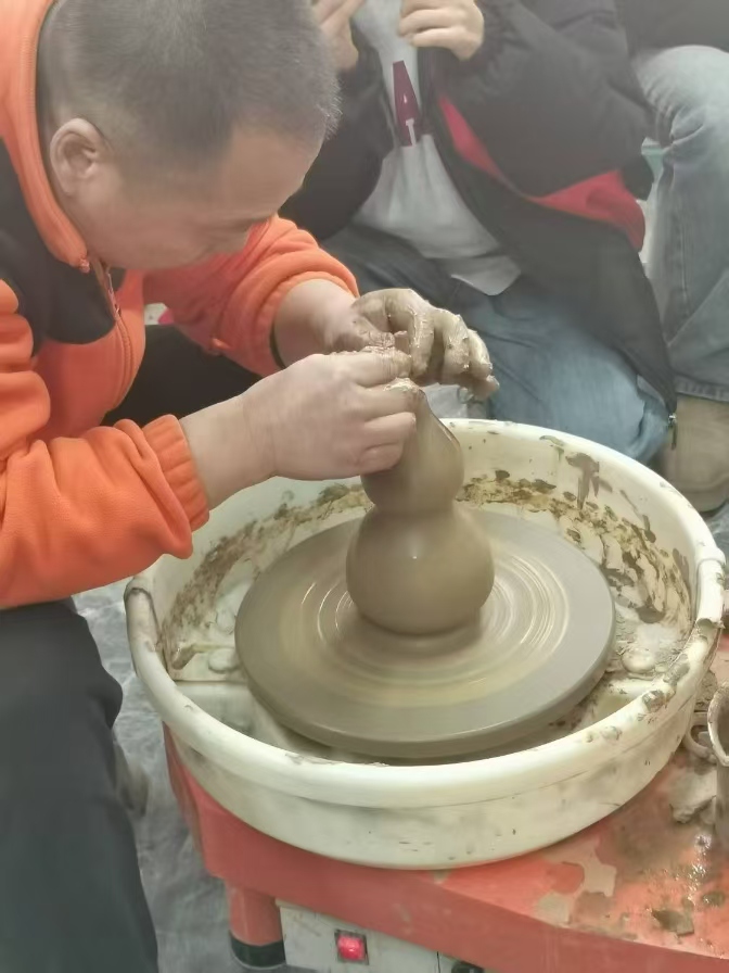 在青島膠州,實(shí)踐服務(wù)團(tuán)拜訪了黑陶傳承人葉孝忠。葉孝忠不僅耐心解答團(tuán)隊(duì)成員的疑問,講述黑陶的歷史淵源、獨(dú)特魅力和傳承困境,還親自上陣示范拉坯工藝。成員們紛紛上手體驗(yàn),在旋轉(zhuǎn)的泥坯間感受傳統(tǒng)技藝的溫度與力量,將理論知識(shí)與實(shí)踐緊密結(jié)合。