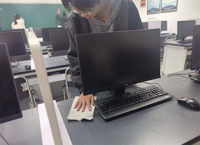 我院動員了一群滿懷熱情的志愿者,開展校園煥新活動。他們懷揣著對校園的深厚情感,走進教學樓、路面、機房等場所,進行義務清潔工作。教學樓里,志愿者細致打掃,讓教室重煥明亮整潔;校園道路上,他們認真清掃,落葉與碎垃圾被一掃而空;機房中,志愿者以專業(yè)細致的態(tài)度,保障設備的清潔與安全運行。