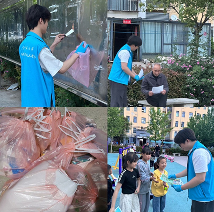 負(fù)責(zé)清理小廣告的同學(xué)們手持鏟子、噴壺等工具,走進(jìn)樓道。樓道里,墻面上貼滿了形形色色的小廣告,有的已經(jīng)張貼很久,變得十分頑固。面對(duì)這些“城市牛皮癬”,同學(xué)們沒(méi)有絲毫退縮,他們先用噴壺將廣告紙噴濕,然后小心翼翼地用鏟子一點(diǎn)點(diǎn)鏟除。遇到特別難清理的地方,他們就蹲在地上,耐心地用指甲一點(diǎn)點(diǎn)摳掉殘留的膠漬。汗水浸濕了他們的衣衫,灰塵沾滿了他們的雙手,但他們專注的眼神始終沒(méi)有離開墻面,心中只有一個(gè)目標(biāo),那就是還墻面一片干凈整潔。在小區(qū)的綠化帶和道路兩旁,另一組同學(xué)戴著手套,拿著垃圾袋,仔細(xì)地搜尋著地面上的垃圾。他們不放過(guò)任何一個(gè)角落,哪怕是一片小小的紙屑、一個(gè)煙頭,都認(rèn)真地彎腰撿起。綠化帶里,一些垃圾隱藏在草叢深處,同學(xué)們不顧被樹枝劃傷的危險(xiǎn),小心翼翼地?fù)荛_草叢,將垃圾一一清理出來(lái)。他們穿梭在小區(qū)的各個(gè)角落,用自己的行動(dòng)詮釋著對(duì)社區(qū)環(huán)境的愛(ài)護(hù)。還有一部分同學(xué),他們手拿環(huán)保宣傳海報(bào),熱情地向小區(qū)居民分發(fā),并繪聲繪色地講解環(huán)境保護(hù)知識(shí)。他們用通俗易懂的語(yǔ)言,向居民們介紹垃圾分類的方法和重要性,講述環(huán)境污染對(duì)生活的危害,呼吁大家共同愛(ài)護(hù)社區(qū)環(huán)境,從自身做起,從身邊的小事做起。居民們紛紛停下腳步,認(rèn)真聆聽(tīng)同學(xué)們的講解,有的還提出了自己的疑問(wèn),同學(xué)們都耐心地一一解答。