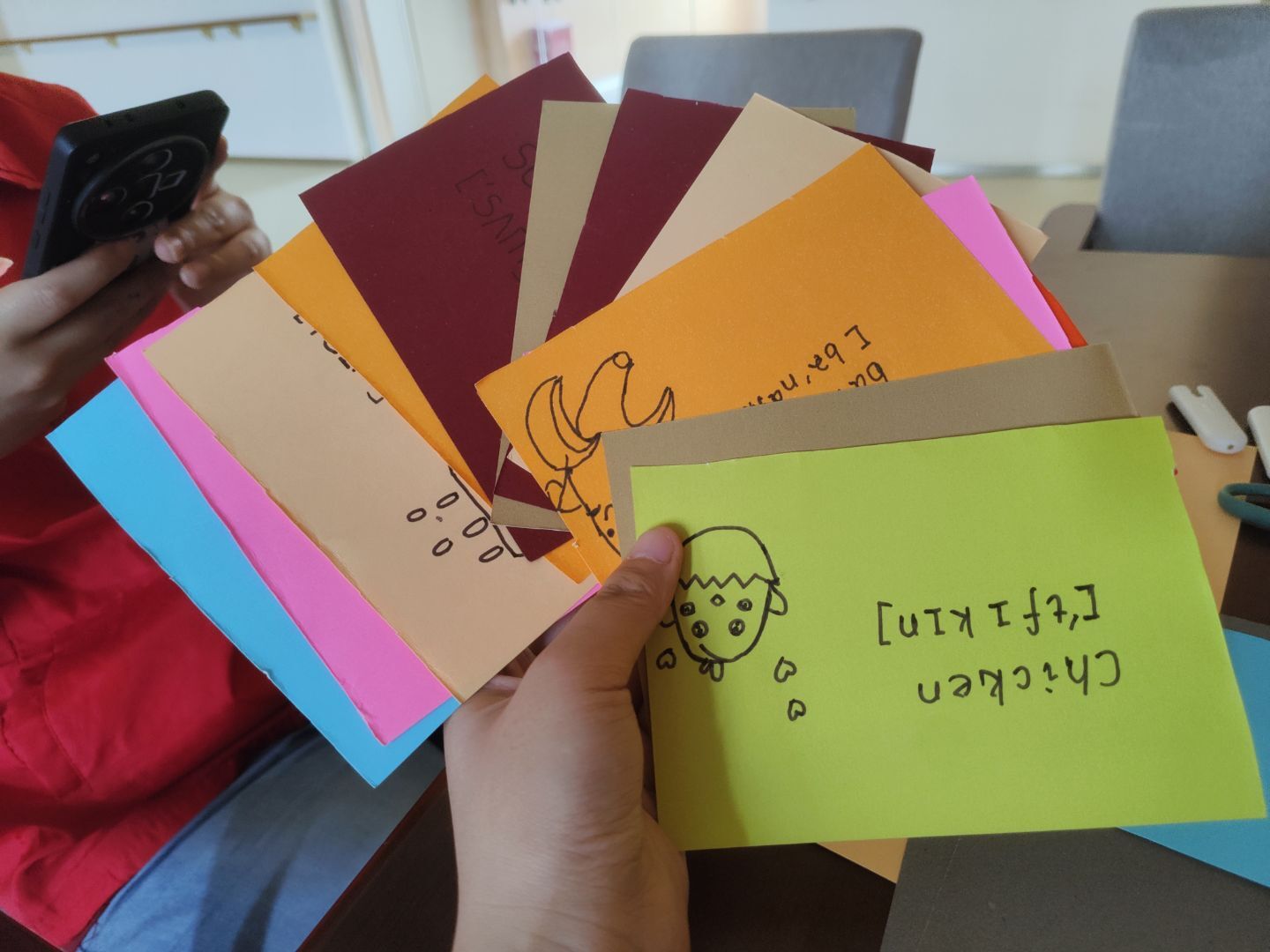 圖為志愿者制作的英語(yǔ)小卡。 方曉鳳 供圖