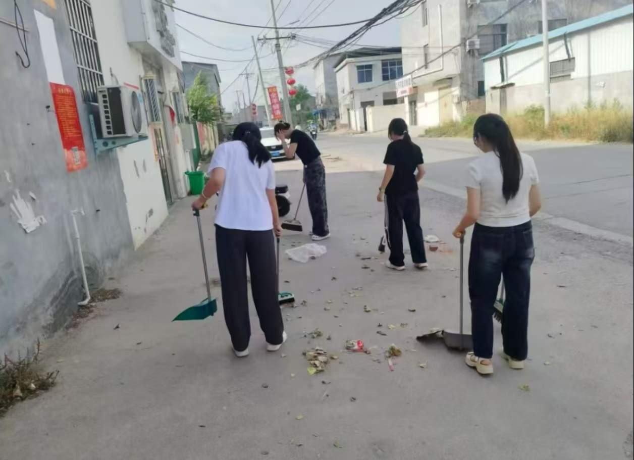 6月19日 - 6月20日團隊抵達張崗村后,明確清掃范圍,劃分小組,分發(fā)掃帚、簸箕等工具,對村里主干道進行垃圾清掃,重點清理落葉、塑料袋、廢棄雜物等。此次活動改善村莊環(huán)境面貌,為后續(xù)工作營造良好氛圍,也讓村民直觀感受到環(huán)境變化。6月21日 - 6月23日通過入戶走訪等形式,向中老年人普及環(huán)保知識,講解垃圾分類、節(jié)約資源等知識;用方言結合案例,耐心解答村民疑問,組織簡單互動問答。此次活動提高了村民環(huán)保認知,推動環(huán)保理念深入鄉(xiāng)村,培養(yǎng)村民環(huán)保習慣。6月24日 - 6月26日再次對街道進行全面清掃,重點處理衛(wèi)生死角,并在清掃時向沿途村民宣傳環(huán)保。此次活動鞏固環(huán)境治理成果,深化環(huán)保宣傳效果,增強村民參與感與主動性 。