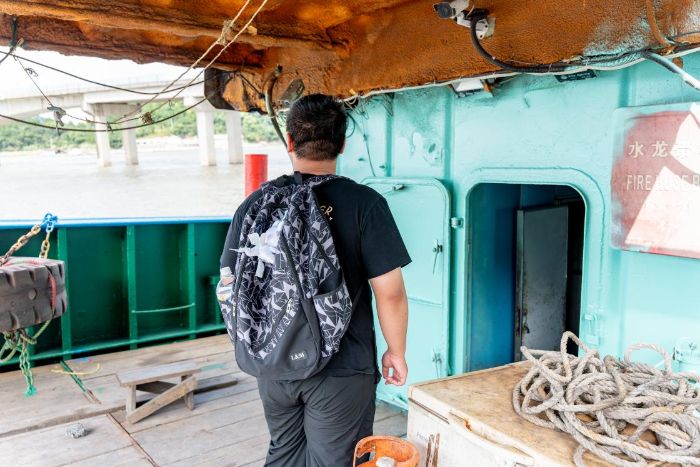 圖為團(tuán)隊(duì)成員正前往漁船的儲(chǔ)藏室 潘弈攝