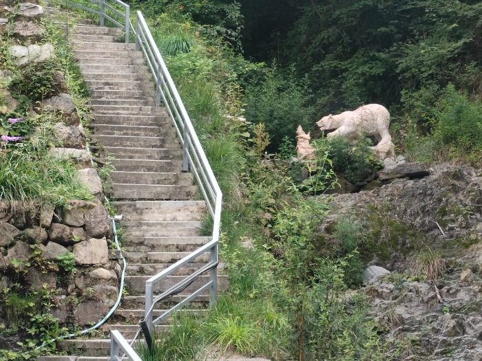 最后,實(shí)踐隊(duì)前往當(dāng)?shù)貥O具特色的綿兮簌民宿進(jìn)行調(diào)查研究,綿兮簌幾乎看不到夯土痕跡,卻最大限度保留了地形原貌。建筑隨坡就勢(shì),緊密結(jié)合當(dāng)?shù)氐匦握归_設(shè)計(jì),微型山水景觀、傍山露臺(tái)、涼亭等空間,模糊了人與自然的界限,實(shí)現(xiàn)建筑與環(huán)境的有機(jī)融合。