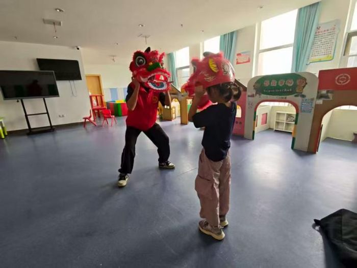 團(tuán)隊(duì)通過(guò)查閱文獻(xiàn),發(fā)現(xiàn)大肌肉群運(yùn)動(dòng)干預(yù)可以顯著改善孤獨(dú)癥兒童的動(dòng)作能力和感覺(jué)統(tǒng)合功能,證實(shí)了運(yùn)動(dòng)訓(xùn)練的臨床價(jià)值。而傳統(tǒng)康復(fù)訓(xùn)練多依賴器械或單一感官刺激,存在依從性低、效果單一等問(wèn)題。舞獅作為融合武術(shù)、舞蹈與民俗信仰的傳統(tǒng)文化形式,其動(dòng)作體系(如位移、操控、平衡)與兒童動(dòng)作發(fā)展理論高度契合,為感覺(jué)統(tǒng)合訓(xùn)練提供了新的實(shí)踐視角。