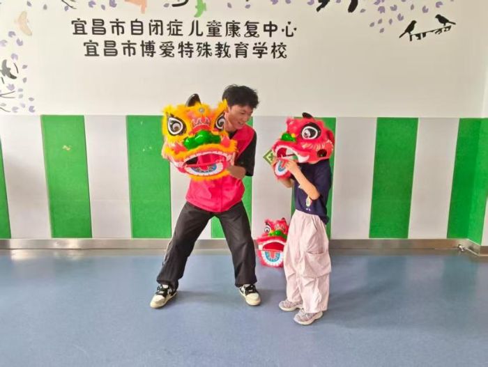 三峽大學(xué)體育學(xué)院聯(lián)合暖“星”護(hù)航團(tuán)隊(duì)于暑期“三下鄉(xiāng)”期間,在宜昌市點(diǎn)軍區(qū)博愛(ài)特殊教育學(xué)校推出“峽江星火”計(jì)劃特別篇——“獅躍童星”訓(xùn)練營(yíng)。團(tuán)隊(duì)依托專業(yè)所長(zhǎng),把國(guó)家級(jí)非遺“舞獅”拆解為科學(xué)的大肌肉群干預(yù)方案,讓鼓點(diǎn)與跳躍化作打開(kāi)孤獨(dú)癥兒童感知之門的鑰匙。
