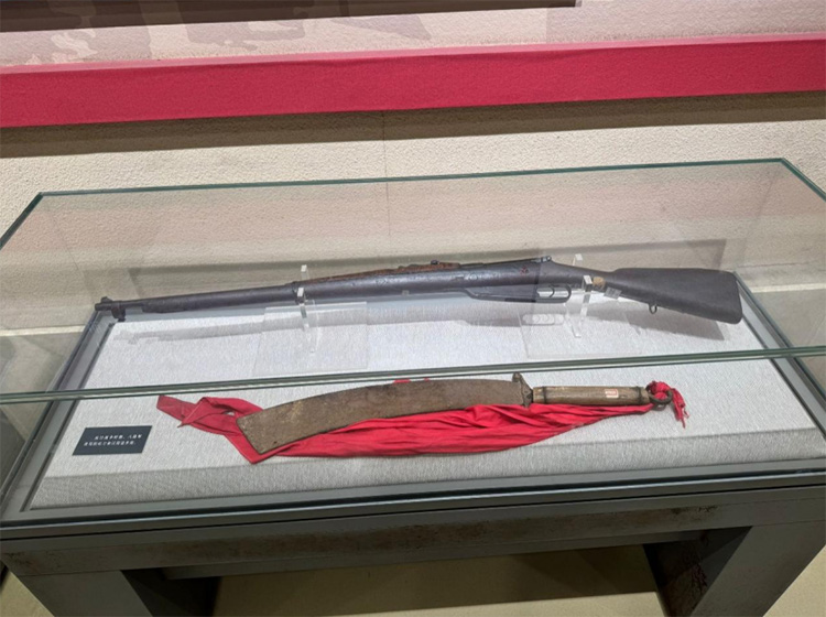 閱歷紅色寶藏,在參觀紅色遺物中發(fā)現(xiàn)奮斗情懷 成員們來到展柜——老舊長槍與紅綢大刀靜靜陳列其中。槍身銹蝕、大刀斑駁,可小組成員知道,它們曾在戰(zhàn)火中呼嘯。西柏坡歲月里,先輩憑這些武器,以寡敵眾、以弱勝強,每道銹痕都是戰(zhàn)斗印記,紅綢殘色藏著熱血信仰,讓大家讀懂革命勝利是拼出來的,艱苦奮斗精神,就凝在這槍炮的過往里。