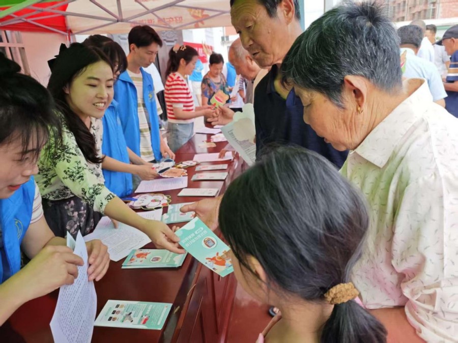 圖3志愿者給居民發(fā)放宣傳手冊(吳灘社區(qū))