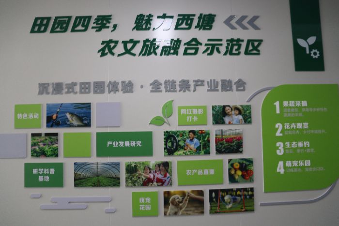離開田間地頭,團(tuán)隊(duì)轉(zhuǎn)場(chǎng) “田園四季?魅力西塘 —— 農(nóng)文旅融合示范區(qū)” 展示區(qū),開啟多元業(yè)態(tài)體驗(yàn)之旅。從生態(tài)垂釣的悠閑愜意,到研學(xué)科普基地的農(nóng)事知識(shí)探秘;從網(wǎng)紅攝影打卡點(diǎn)的田園風(fēng)光定格,到萌寵樂園的趣味互動(dòng)體驗(yàn),示范區(qū)以 “沉浸式田園體驗(yàn)?全鏈條產(chǎn)業(yè)融合” 為核心理念,構(gòu)建起豐富多元的鄉(xiāng)村業(yè)態(tài)矩陣。團(tuán)隊(duì)成員親身參與果蔬采摘,在指尖觸碰間感受農(nóng)耕樂趣;漫步花卉觀賞區(qū),在花香綠意中體悟鄉(xiāng)村環(huán)境之美;還系統(tǒng)了解了產(chǎn)業(yè)發(fā)展研究、農(nóng)產(chǎn)品直播帶貨等助力鄉(xiāng)村產(chǎn)業(yè)升級(jí)的創(chuàng)新舉措。調(diào)研發(fā)現(xiàn),示范區(qū)通過精準(zhǔn)整合農(nóng)業(yè)生產(chǎn)、文化體驗(yàn)、旅游休閑等功能模塊,實(shí)現(xiàn)一二三產(chǎn)業(yè)深度融合,為鄉(xiāng)村發(fā)展持續(xù)注入新動(dòng)能。