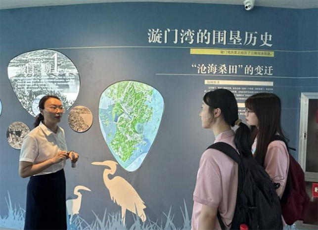 公共管理學院浙里“濕”意·共富同行暑期社會實踐團呂華科長為實踐團介紹漩門灣歷史