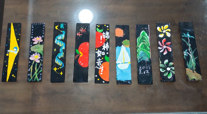 圖為團(tuán)隊(duì)成員嘗試制作水磨漆書(shū)簽