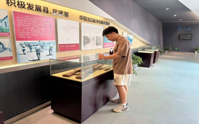 圖為“沙洲紅情,青春飛揚(yáng)”團(tuán)隊(duì)隊(duì)員參觀抗日作戰(zhàn)兵器通訊員朱雨雷 供圖