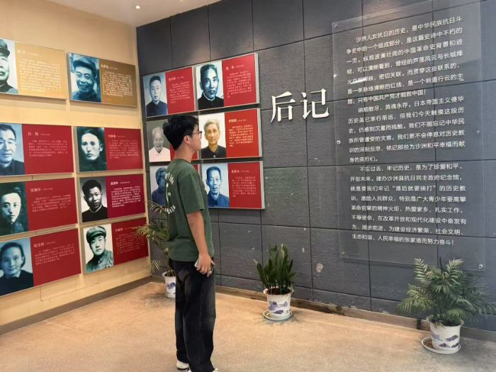 一進(jìn)入紀(jì)念館,首先映入眼簾的是歷史回顧展區(qū)。這里詳細(xì)記錄了抗日戰(zhàn)爭(zhēng)時(shí)期沙洲地區(qū)的重要?dú)v史事件。從1931年的九一八事變到1945年日本投降,每一個(gè)關(guān)鍵節(jié)點(diǎn)都被精心展示。通過(guò)觀看這些歷史資料,隊(duì)員們深刻感受到了當(dāng)時(shí)中國(guó)人民所面臨的巨大挑戰(zhàn)和他們不屈不撓的斗爭(zhēng)精神。